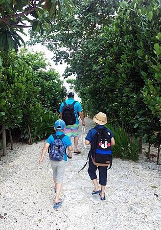 從飯店旁邊的樹林穿過去就會到沙灘 但對男孩們來說這好像探險