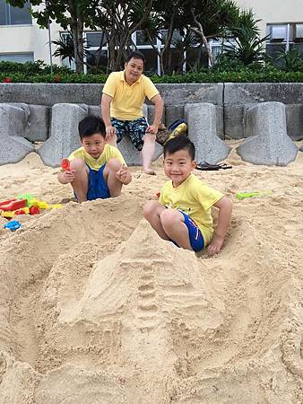 把小孩丟在沙灘他們樂 我也樂 哈哈