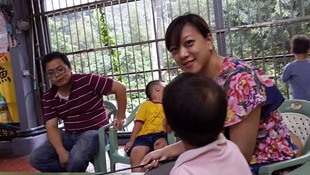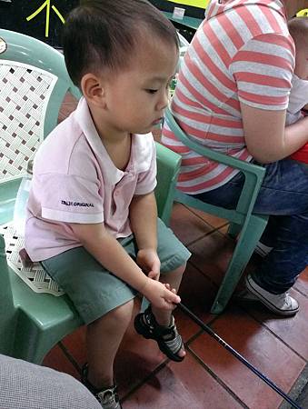 兩小一樣興奮 可是Momo就是靜不下心拿釣竿