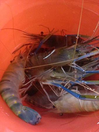這邊是公蝦池 蝦子是泰國蝦 比較大隻也稍微貴些